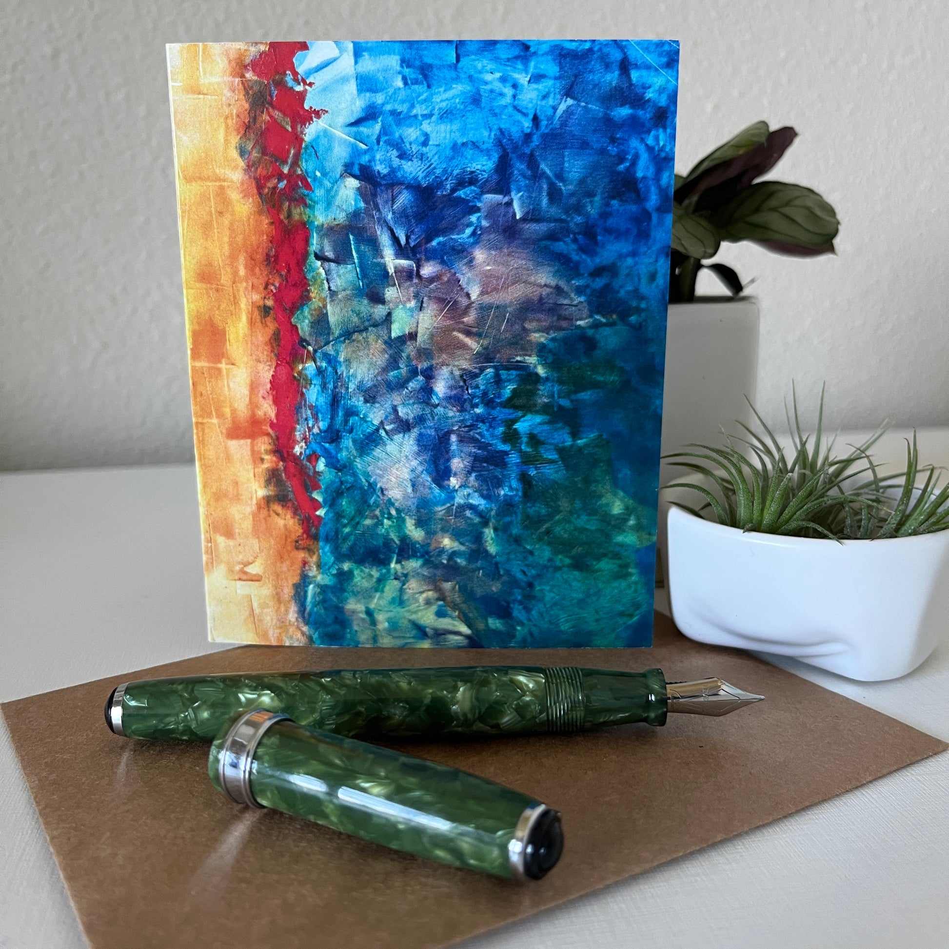 Card is 4" x 6" paired with a brown paper envelope. The writing surface accepts all media with relish!
