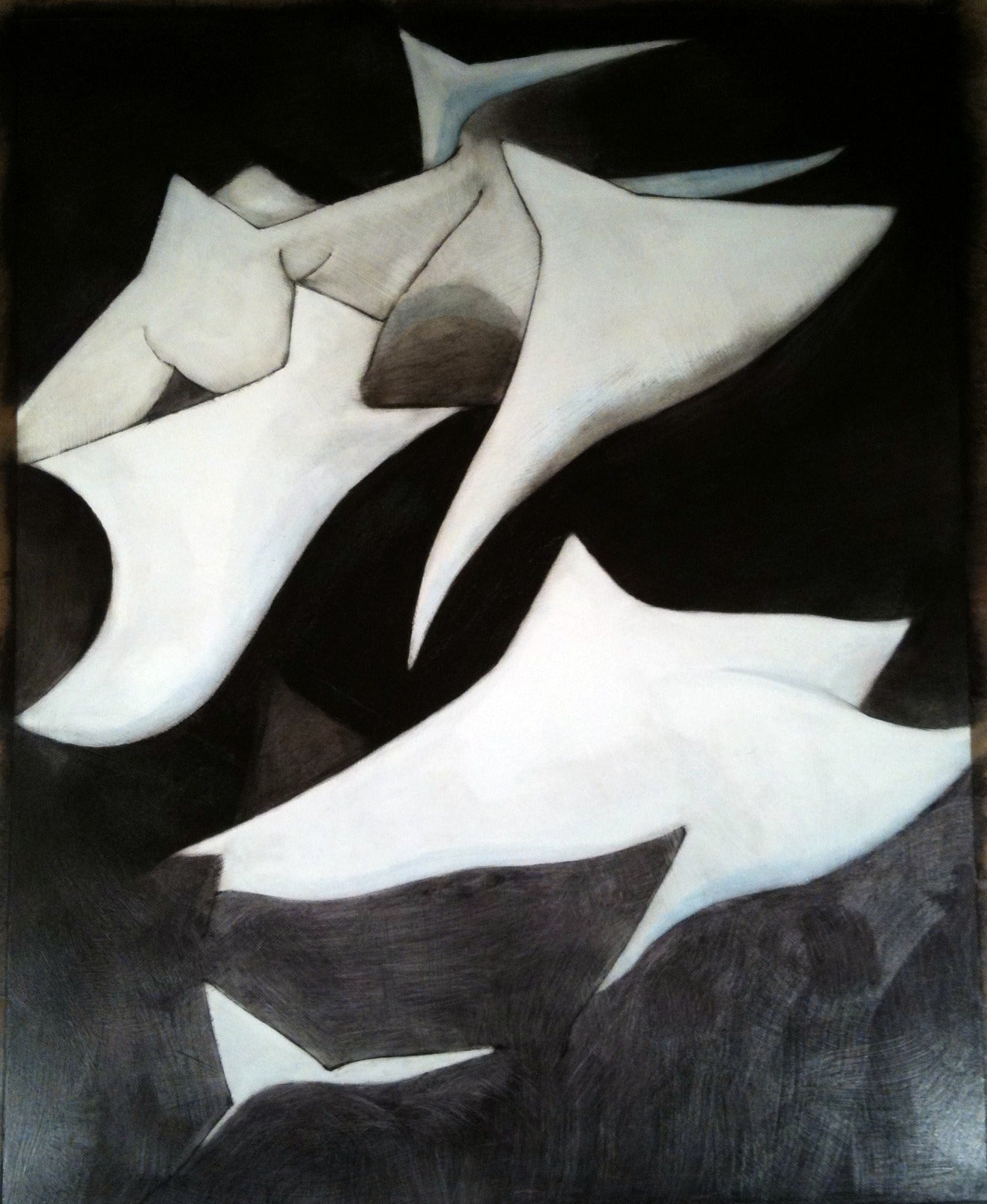 An original oil painting on paper, approximately 30" x 40" unmounted. This is based on a striking photo my mother had taken of a favorite outdoor sculpture covered in snow.