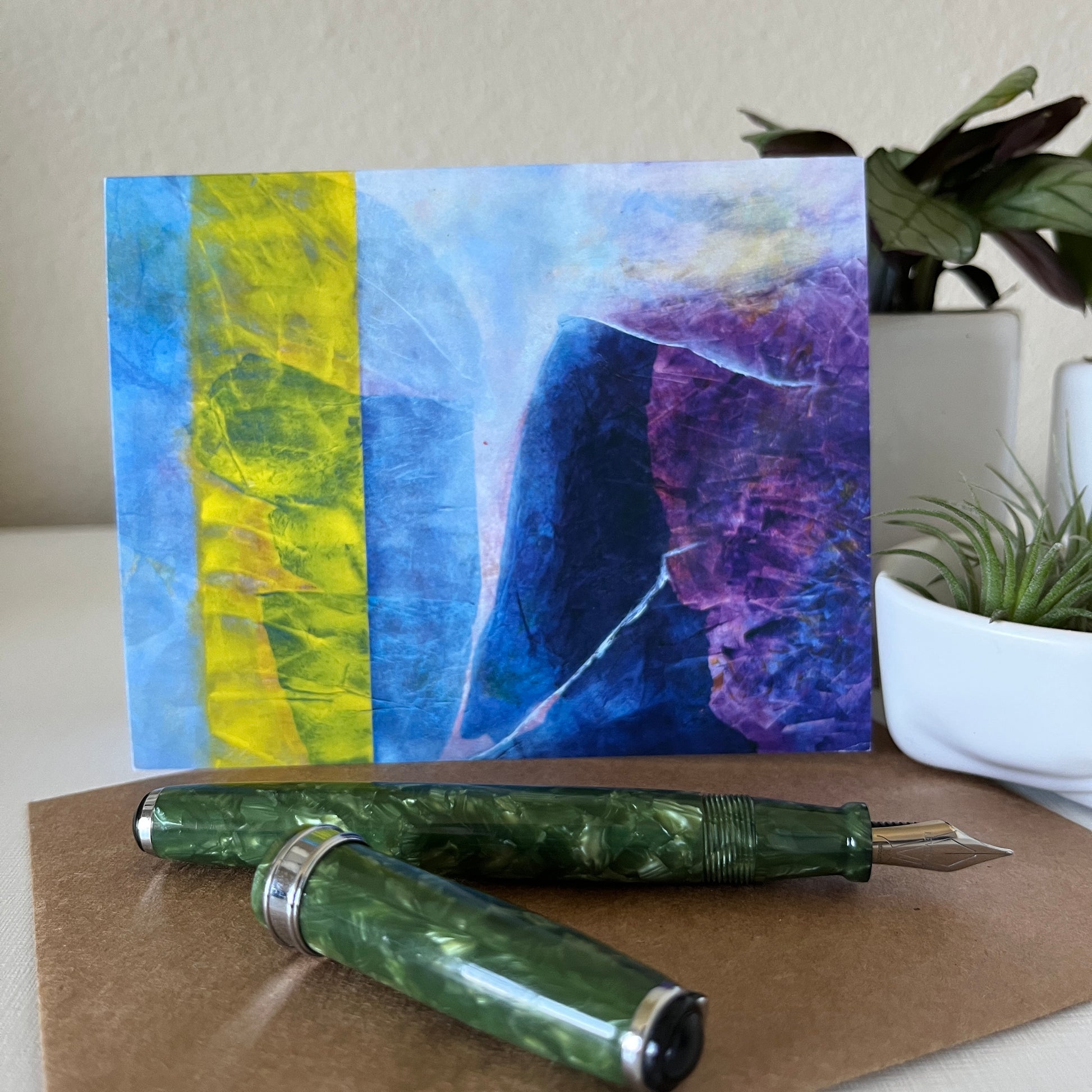 Card is 4" x 6" paired with a brown paper envelope. The writing surface accepts all media with relish!
